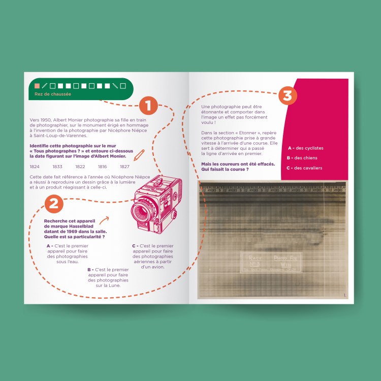 Conception d’un livret-jeu pour enfants pour le Musée de la photographie Nicéphore Niépce (Chalon-sur-Saône) à l’occasion des Journées Européennes du Patrimoine 2022.