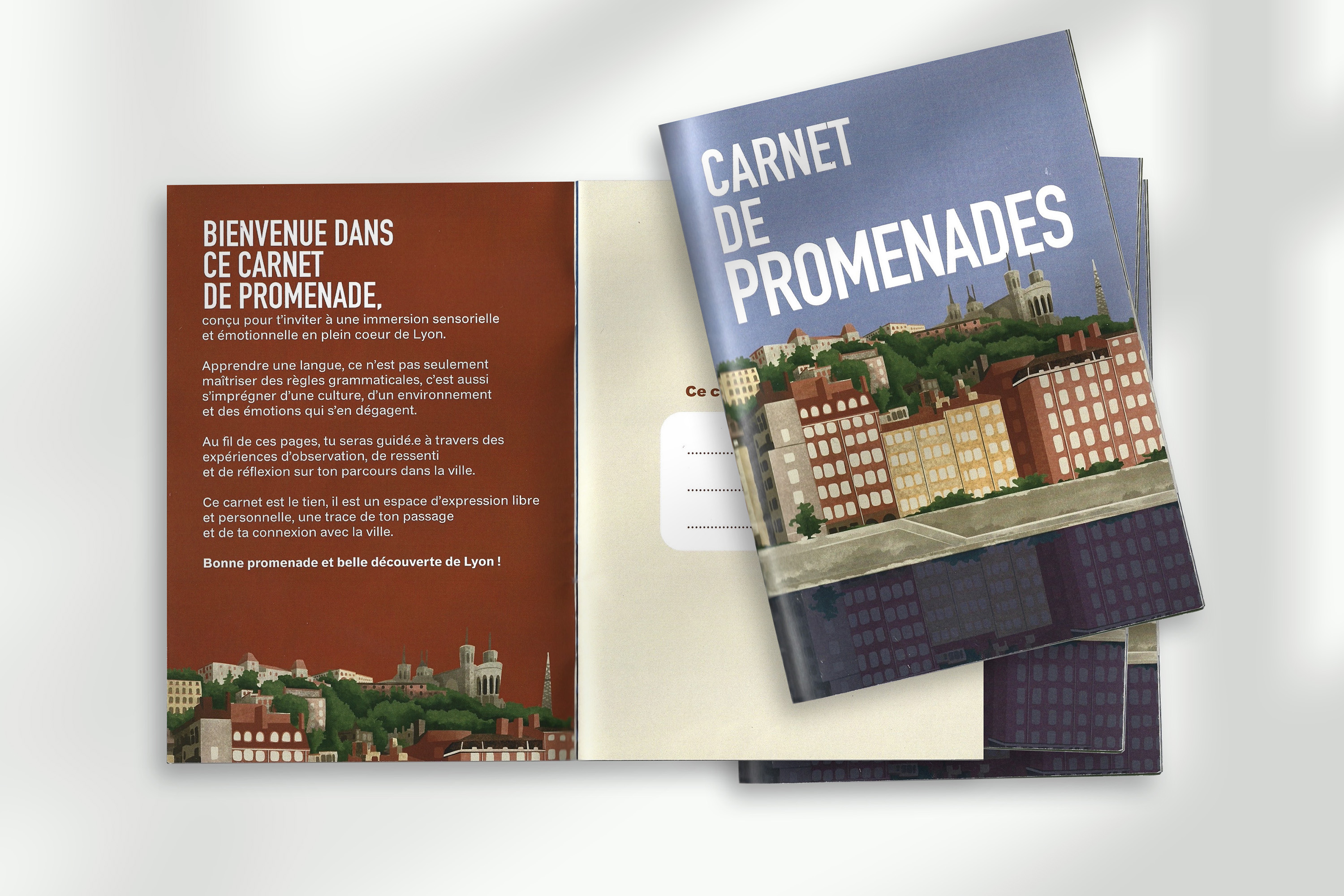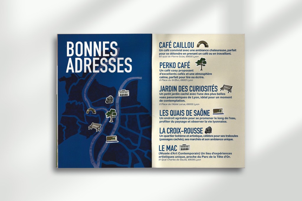 Commande réalisée dans le cadre de l’apprentissage de la langue française à destination d’un public non-francophone, à travers la découverte de lieux emblématiques de la ville de Lyon.